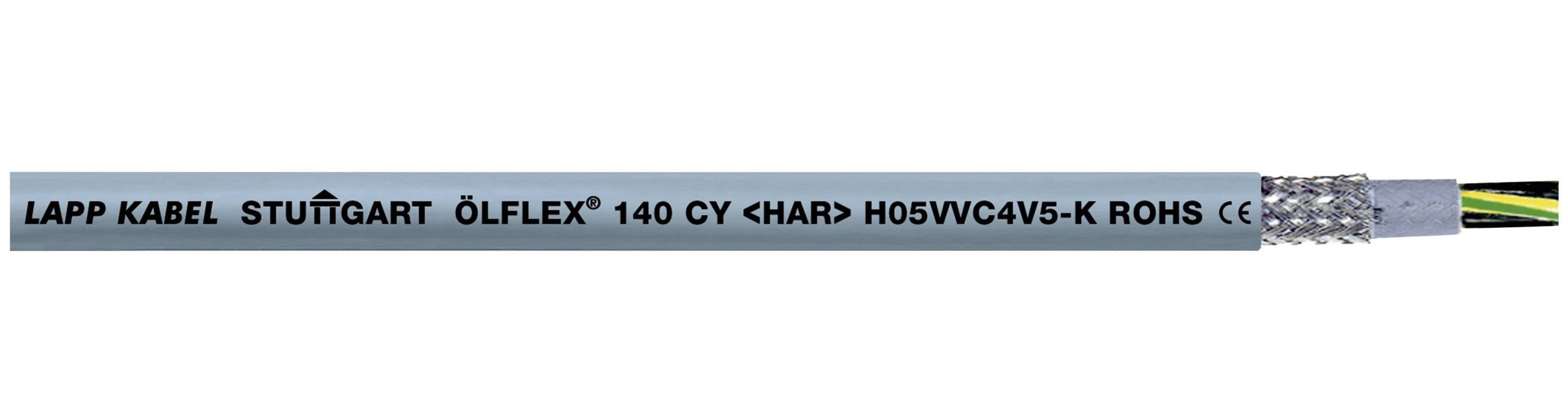 ÖLFLEX® 140 — гармонізований за H05VVC4V5-K кабель керування з оболонкою з ПВХ, маслостійкий, екранований, гнучкий та з нумерованими жилами для різних умов експлуатації, U0/U: 300/500 В