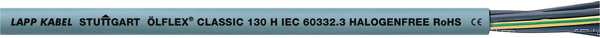 ÖLFLEX® CLASSIC 130 H — безгалогенний кабель керування, галоген-безпечний пожежостійкий, гнучкий, для різних умов експлуатації, U0/U: 300/500 В