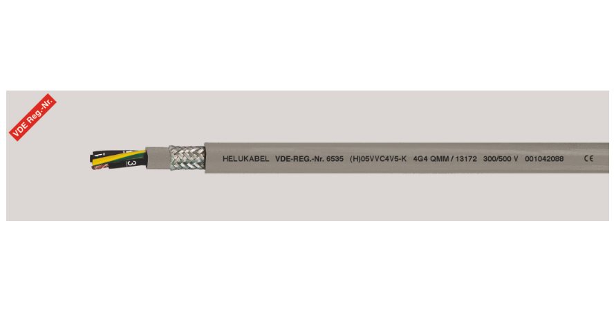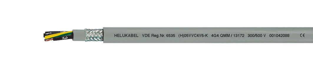 (H)05VVC4V5-K ((N)YSLYCYÖ-JZ) – з цифровим маркуванням жил, екранований, маслостійкий, ЕМС, з розміткою метражу.