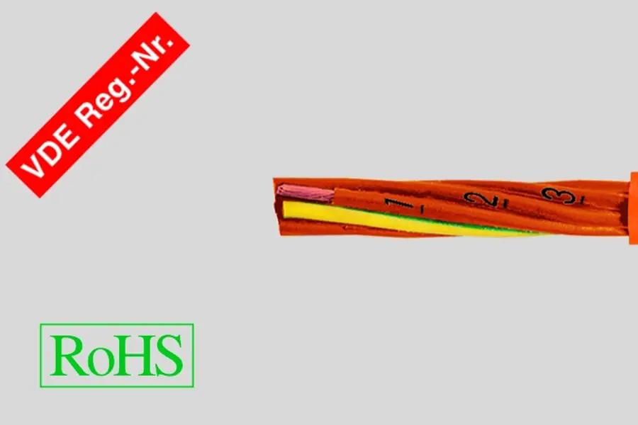 Помаранчеві жили з цифровим маркуванням чорного кольору відповідно до DIN VDE 0293