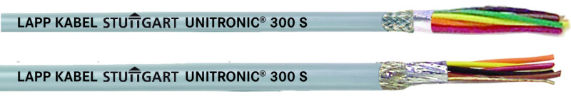 • UNITRONIC® 300 S: загальний екран із алюмінієвої фольги з підпуском контактної жили та обплетення з мідних луджених дротів (щільність обплітання 75%)