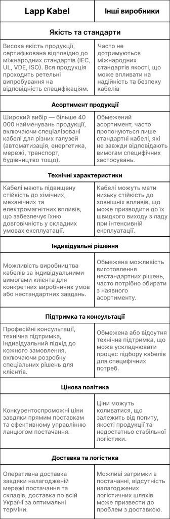 "Продукція Lapp Kabel якісна, зручна у використанні та завжди постачається вчасно. Працюємо з ними вже кілька років — завжди задоволені."