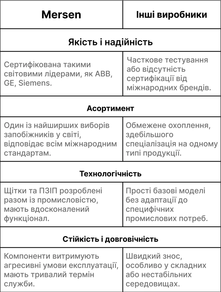 Порівняння Mersen з аналогами
